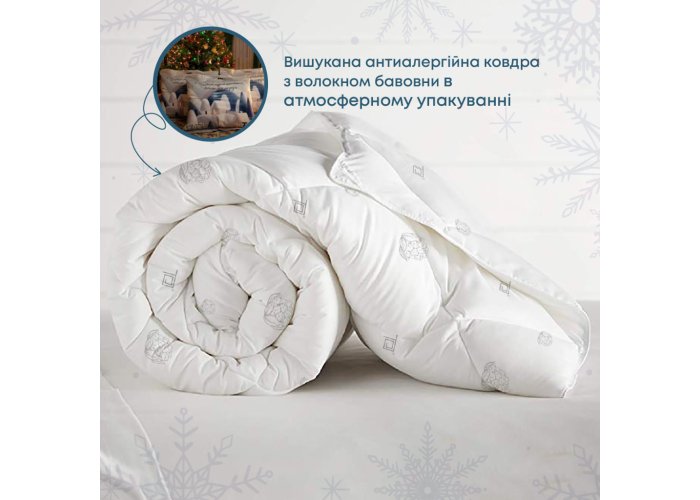 Вишукана антиалергенна ковдра з волокном бавовни у лімітованому атмосферному святковому упакуванні. Ідеально для подарунку собі чи близьким.