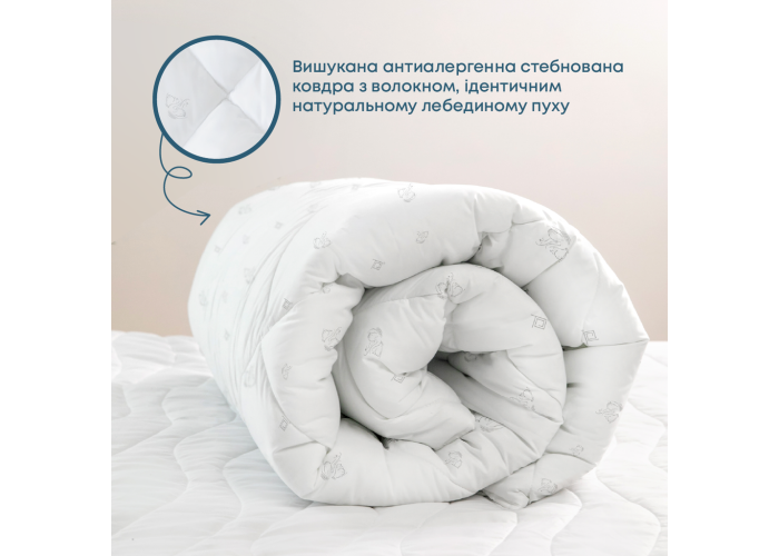 Вишукана антиалергенна стебнована ковдра з волокном, ідентичним натуральному лебединому пуху.