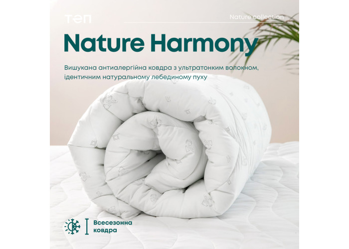 Ковдра "NATURE COLLECTION" HARMONY SUMMER LINE від ТЕП - це ідеальне рішення для літніх ночей, яке забезпечує незабутній комфорт і здоровий сон. Ця ковдра має унікальні терморегулюючі властивості та використовує спеціальну тканину Membrana, яка утримує повітря всередині та створює повітряний ефект.