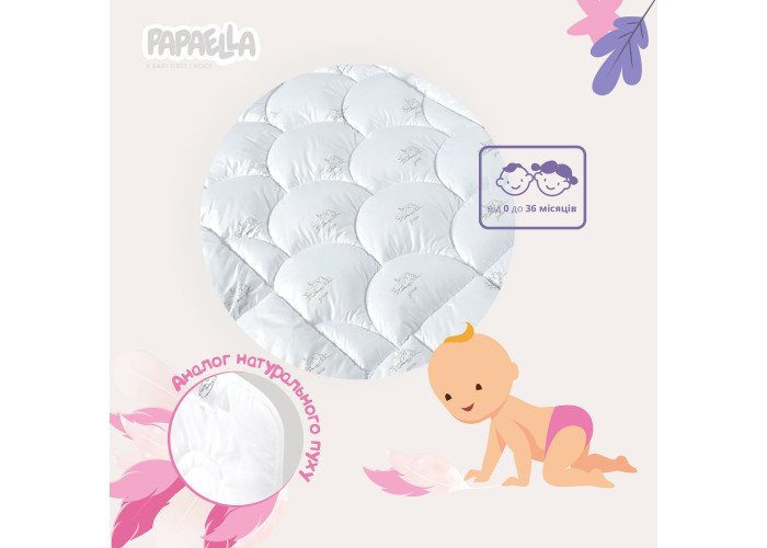 - Як наповнювач використовується поліефірне мікроволокно високої якості. Це силіконізований матеріал, який не всмоктує вологу. Має всі властивості натурального наповнювача - лебединого пуху. М’який, легкий, теплий. Додаткові плюси подібного рішення - волокно антиалергенне, антибактеріальне, не вбирає піт, запах, бруд. Доступна ціна у порівнянні з натуральними аналогом.