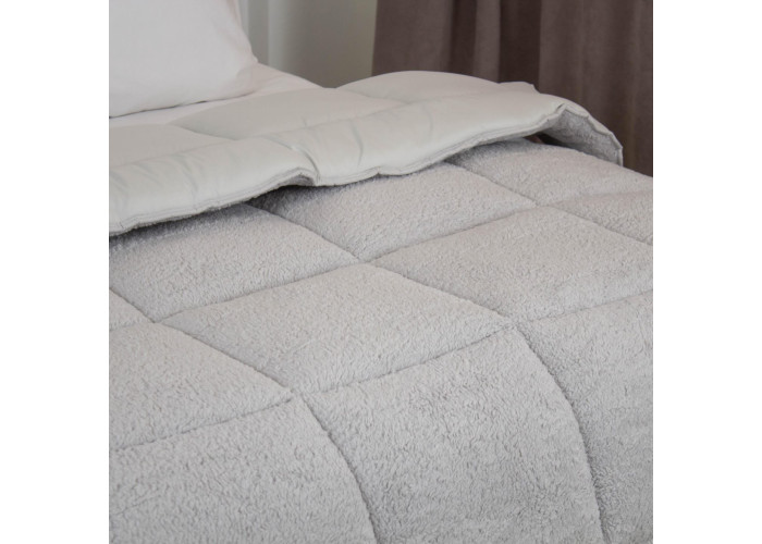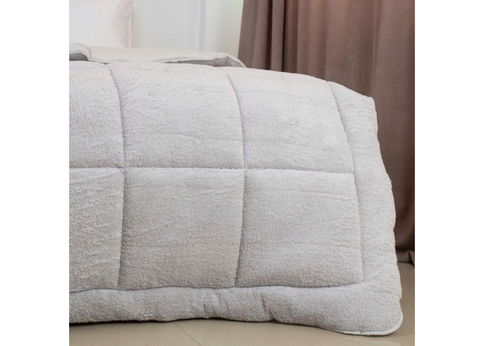 Ковдра Teddy від ТЕП — це тепла демісезонна та зимова ковдра. Верх зі штучного хутра Teddy, а зворотна сторона зовнішньої тканини з мікрофібри забезпечує комфортний контакт зі шкірою. Наповнювач Double Air рівномірно утримує тепло, завдяки великій простібці, рівномірно розподіляється по ковдрі і не збивається, не обтяжуючи ковдру. Ідеальний вибір для тих, хто мерзне вночі та цінує затишок, легкий догляд і сучасний вигляд. • Неймовірна м’якість з обох боків — поєднання штучного хутра Teddy та мікрофібри створює ефект «обіймів». • Демісезонна та зимова — універсальний варіант для холодної пори року. • Легкий та сучасний наповнювач Double Air — не звалюється, не тисне, зберігає форму • Простий догляд — машинне прання без втрати м’якості та вигляду • Стильні базові кольори — світло-сірий, молочний та золотий беж легко вписуються в будь-який інтер’єр • Оптимальна щільність 350 г/м² — баланс тепла й комфорту без відчуття важкості
