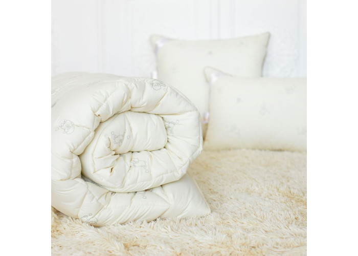 Супер тепла та легка ковдра з натуральною вовною - гарантовано здоровий сон та чудовий відпочинок. Зимова ковдра відмінної якості з унікальним принтом овечки на верхній тканині. Має приємний молочний колір, вона об’ємна, легка, пишна.