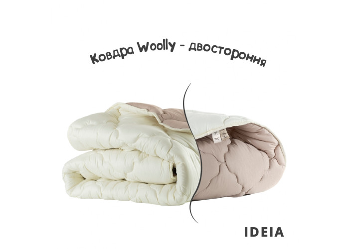 Ковдра Woolly - двостороння. Одна сторона молочного кольору, інша - бежева. Краї ковдри оброблено декоративним кантом молочного кольору. Виріб виконаний в декількох розмірах, що дозволяє підібрати ковдру під будь-який розмір ліжка.
