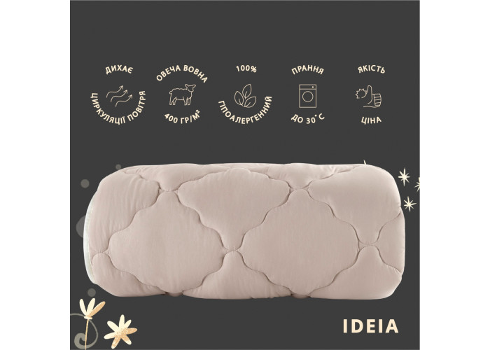 Це забезпечує виріб усіма властивостями вовняної ковдри за доступною, привабливою ціною.