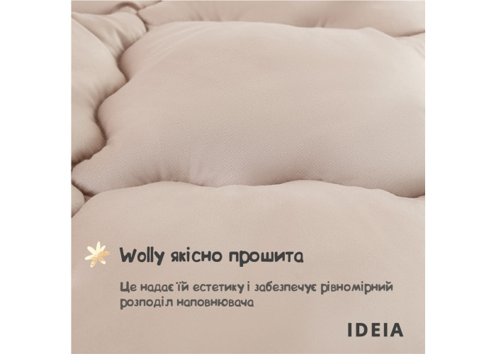 Натуральна овеча вовна. У складі наповнювача знаходиться натуральна вовна. Ковдри Woolly зігріють в будь-який час року. Вони приємні на дотик. Одночасно теплі, об’ємні та повітряні. Гарантують комфортний сон холодної зимової ночі.