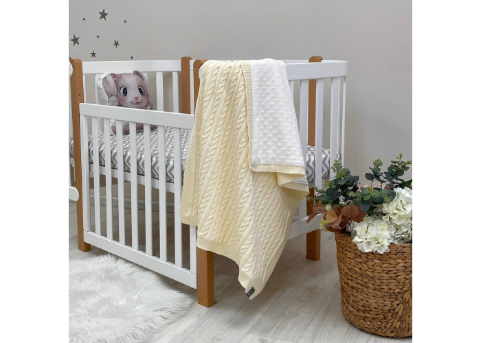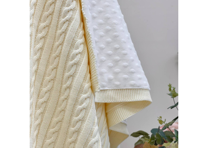 Дитячий утеплений плед TM Msonya підійде для діток від народження до 3-х років. З одного боку - в'язаний плед з бавовняної нитки, з іншого - підкладка wellsoft minky, що робить його м'яким і приємним на дотик. Його можна скласти в конверт, закутати малюка, використовувати в дитячому ліжечку, як додаткову ковдрочку. Вкривати немовля в візочку, під час прогулянок або в автомобілі.