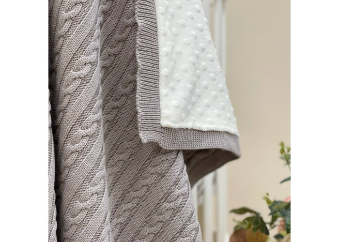 Дитячий утеплений плед TM Msonya підійде для діток від народження до 3-х років. З одного боку - в'язаний плед з бавовняної нитки, з іншого - підкладка wellsoft minky, що робить його м'яким і приємним на дотик. Його можна скласти в конверт, закутати малюка, використовувати в дитячому ліжечку, як додаткову ковдрочку. Вкривати немовля в візочку, під час прогулянок або в автомобілі.