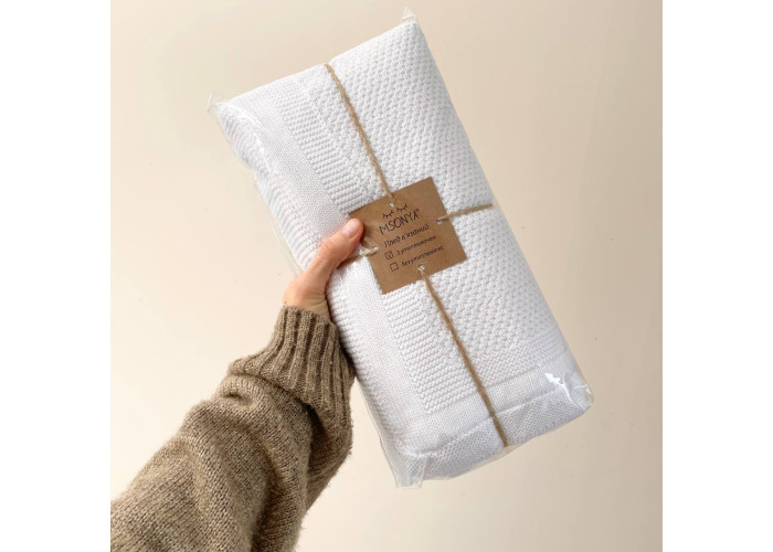 Дитячий утеплений плед TM Msonya підійде для діток від народження до 3-х років. З одного боку - в'язаний плед з бавовняної нитки, з іншого - підкладка wellsoft minky, що робить його м'яким і приємним на дотик. Його можна скласти в конверт, закутати малюка, використовувати в дитячому ліжечку, як додаткову ковдрочку. Вкривати немовля в візочку, під час прогулянок або в автомобілі.
