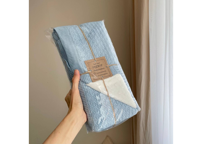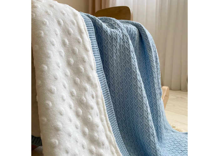 Дитячий утеплений плед TM Msonya підійде для діток від народження до 3-х років. З одного боку - в'язаний плед з бавовняної нитки, з іншого - підкладка wellsoft minky, що робить його м'яким і приємним на дотик. Його можна скласти в конверт, закутати малюка, використовувати в дитячому ліжечку, як додаткову ковдрочку. Вкривати немовля в візочку, під час прогулянок або в автомобілі.