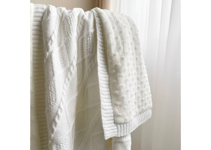 Дитячий утеплений плед TM Msonya підійде для діток від народження до 3-х років. З одного боку - в'язаний плед з бавовняної нитки, з іншого - підкладка wellsoft minky, що робить його м'яким і приємним на дотик. Його можна скласти в конверт, закутати малюка, використовувати в дитячому ліжечку, як додаткову ковдрочку. Вкривати немовля в візочку, під час прогулянок або в автомобілі.