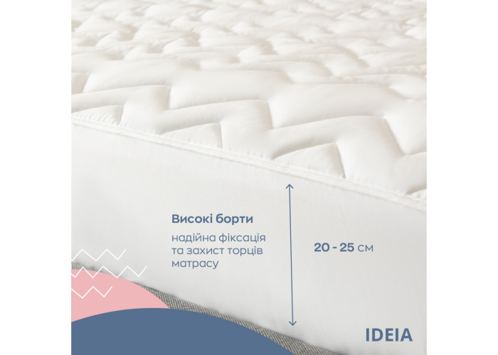 Дана модель наматрацника відрізняється наявністю бортів по периметру. Що значно підвищує рівень захищеності матраца і забезпечує вишуканий візуальний ефект.