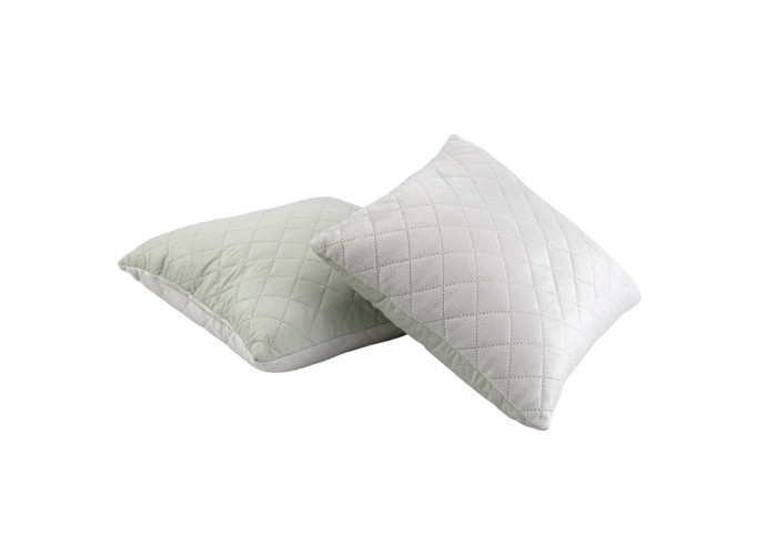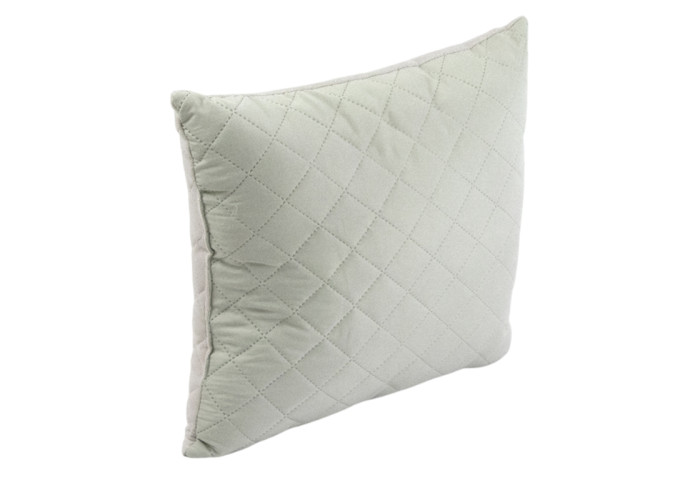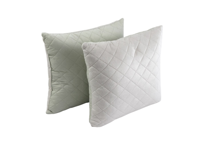 Мікрофайбер стебнований- це синтетичний матеріал нового покоління з'єднаний з силіконізованим волокном щільністю 100гр/м.кв. Він пропускає повітря, тим самим підтримує комфортну температуру тіла. Перевагою цієї тканини є те, що вона не деформується, стійка до механічних розривів і не сідає після прання. Подушки з мікрофайберу прості в догляді, стираються в домашніх умовах і швидко сохнуть, що забезпечує високу гігієнічність виробів. М'яка на дотик тканина має шовковисту, гладку поверхню, прекрасно приймає форму тіла, ніжно огортаючи його м'якими обіймами.