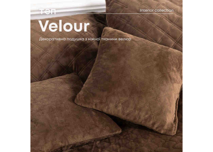 Розкішна м'яка подушка VELOUR від ТЕП. Подушки VELOUR від ТЕП доповнять інтер'єр вашої спальні і подарують відчуття затишку. Надзвичайно м’яка на дотик велюрова тканина виглядає розкішно в будь-якому інтер’єрі. Завдяки якісним матеріалам, подушки VELOUR зберігають естетичний вигляд впродовж довгого часу. Наповнювач в подушках VELOUR – силіконізоване поліефірне волокно. Воно не поглинає пил та бруд, не викликає алергічних реакцій, швидко сохне після прання.