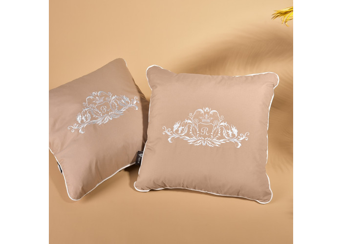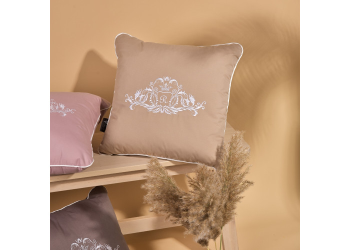 Подушки ROYAL представлені великою кольоровою палітрою. Вони ідеально пасують до колекції покривал тм IDEIA - ROYAL (вишивка на подушці відповідає вишивці на цьому покривалі, власне подушки створювались під нього), Стиль Сube, Люкс, адже верх подушок шиється з однакової тканини у тих же кольорах. Підбираючи подушку можна зіграти на контрасті, або підібрати виключно однакові варіанти, в тон до покривала, що пасуватиме вашому дизайну. Лицевий бік подушки прикрашено вишивкою, яка займає більшу частину площі.