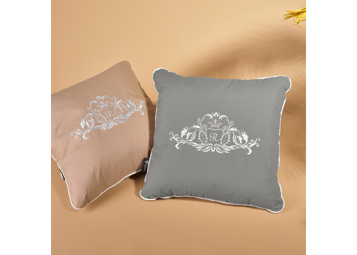 Подушки ROYAL представлені великою кольоровою палітрою. Вони ідеально пасують до колекції покривал тм IDEIA - ROYAL (вишивка на подушці відповідає вишивці на цьому покривалі, власне подушки створювались під нього), Стиль Сube, Люкс, адже верх подушок шиється з однакової тканини у тих же кольорах. Підбираючи подушку можна зіграти на контрасті, або підібрати виключно однакові варіанти, в тон до покривала, що пасуватиме вашому дизайну. Лицевий бік подушки прикрашено вишивкою, яка займає більшу частину площі.