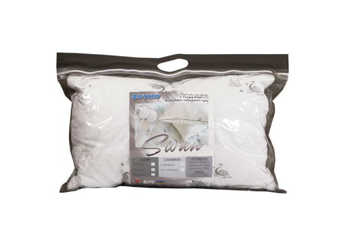 Штучний лебединий пух: сучасний інноваційний наповнювач, який виготовляється з дуже тонких мікроволокон і за своїм зовнішнім виглядом і характеристиками близький до натурального лебединому пуху. При цьому він має істотні переваги: не викликає алергічних реакцій, в ньому не заводяться кліщі та інші мікроорганізми. Подушки з таким наповнювачем можна прати, вони дуже легкі, ніжні і повітряні. Ще однією важливою перевагою є невисока вартість виробів з таким наповнювачем, доступна для кожної родини. Подушки з замінником лебединого пуху м'яко підтримують і розвантажують шию під час сну.