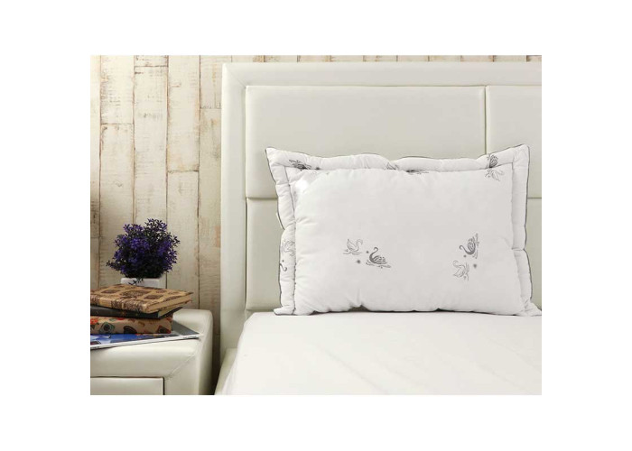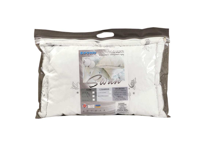 Штучний лебединий пух: сучасний інноваційний наповнювач, який виготовляється з дуже тонких мікроволокон і за своїм зовнішнім виглядом і характеристиками близький до натурального лебединому пуху. При цьому він має істотні переваги: не викликає алергічних реакцій, в ньому не заводяться кліщі та інші мікроорганізми. Подушки з таким наповнювачем можна прати, вони дуже легкі, ніжні і повітряні. Ще однією важливою перевагою є невисока вартість виробів з таким наповнювачем, доступна для кожної родини. Подушки з замінником лебединого пуху м'яко підтримують і розвантажують шию під час сну.