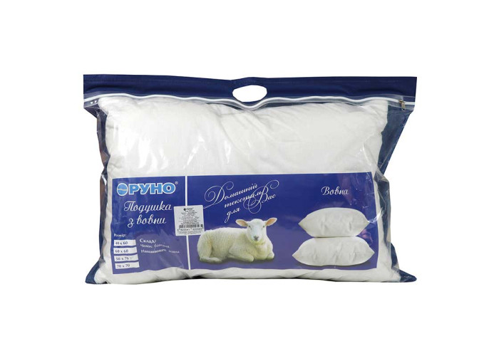 Вовна: натуральний екологічний наповнювач, який виготовляється з овечої вовни і невеликої кількості поліефірного волокна для скріплення вовняних волокон між собою. Овеча вовна дає цілюще сухе тепло, розслаблює м'язи шиї і здатна полегшити головний біль. Подушка з овечою вовною дуже комфортна, допомагає боротися зі стресом і безсонням. Вовну для подушки ретельно промивають і обробляють спеціальним складом, тому вона не колеться і не має запаху. Подушки з таким наповнювачем гідроскопічні, мають лікувальні та профілактичні властивості, забезпечуючи Вашому організму повноцінний і якісний сон.