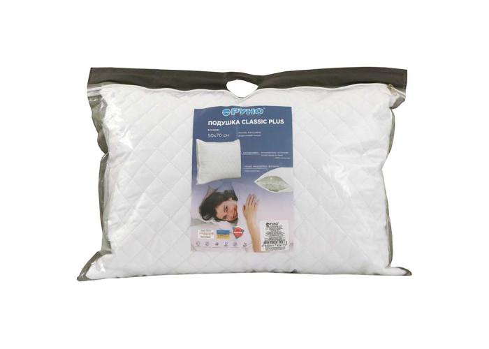Подушка «Classic plus» має прямокутну форму, стебнований чохол на блискавці, а наповнювач поміщений в надійний додатковий чохол з флізеліну. Тепер вам не доведеться прати всю подушку цілком, або діставати наповнювач, досить тільки зняти основний чохол і покласти його в пральну машину.