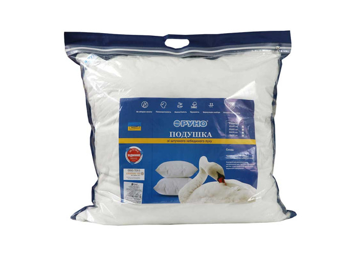 Штучний лебединий пух: сучасний інноваційний наповнювач, який виготовляється з дуже тонких мікроволокон і за своїм зовнішнім виглядом і характеристиками близький до натурального лебединому пуху. При цьому він має істотні переваги: не викликає алергічних реакцій, в ньому не заводяться кліщі та інші мікроорганізми. Подушки з таким наповнювачем можна прати, вони дуже легкі, ніжні і повітряні. Ще однією важливою перевагою є невисока вартість виробів з таким наповнювачем, доступна для кожної родини. Подушки з замінником лебединого пуху м'яко підтримують і розвантажують шию під час сну.