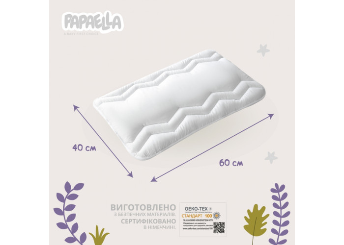 Безпечна для малят. Подушка пошита з гіпоалергенних матеріалів, не здатних викликати подразнення чи алергію. Comfort сертифіковано в Німеччині. Має сертифікат OEKO-TEX 100 і цілком безпечна для чутливої шкіри немовлят.