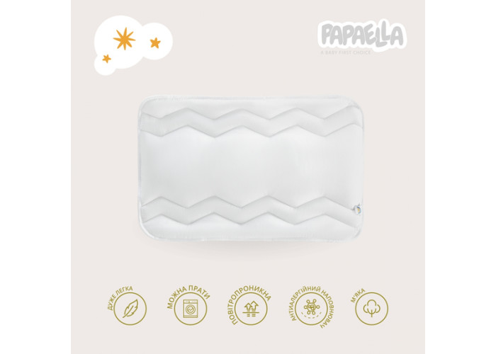 Комфортна для сну. Подушку пошито з урахуванням фізіологічних особливостей тіла дитини.