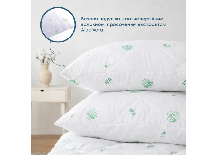 Базова подушка з антиалергенним волокном, просоченим екстрактом Aloe Vera.
