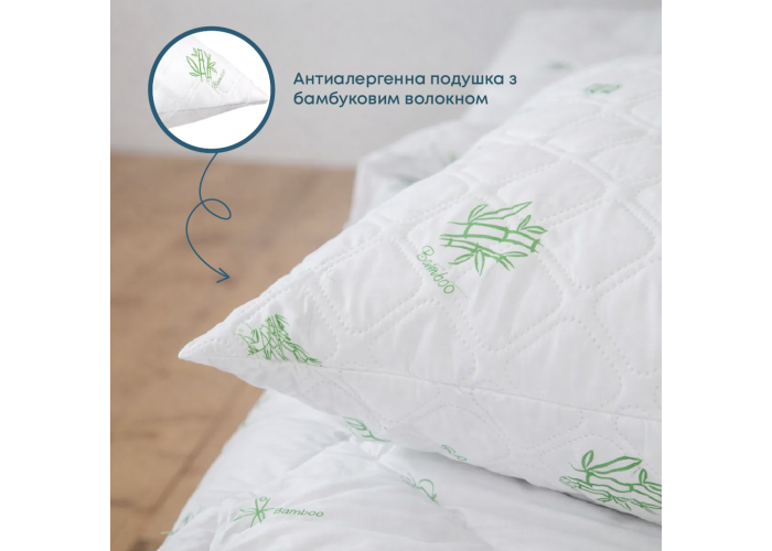 7 причин полюбити цю подушку: 1. Не викликає алергії - тому користуватися можуть усі;2. М'який наповнювач з натуральним бамбуковим волокном для комфортного і міцного сну;3. Бамбукове волокно забезпечує відчуття свіжості вночі та є ідеальним для літа;4. Наповнювач не збивається - достатньо легко потрусити подушку для відновлення об'єму;5. Подушка підлаштовується під висоту плеча та форму тіла для зручного положення голови під час сну;6. Простота у догляді: можна прати в пральній машині та сушити в сушильній машині;7. Виготовляється в Україні з турботою про здоровий сон і дотриманням європейських стандартів якості.