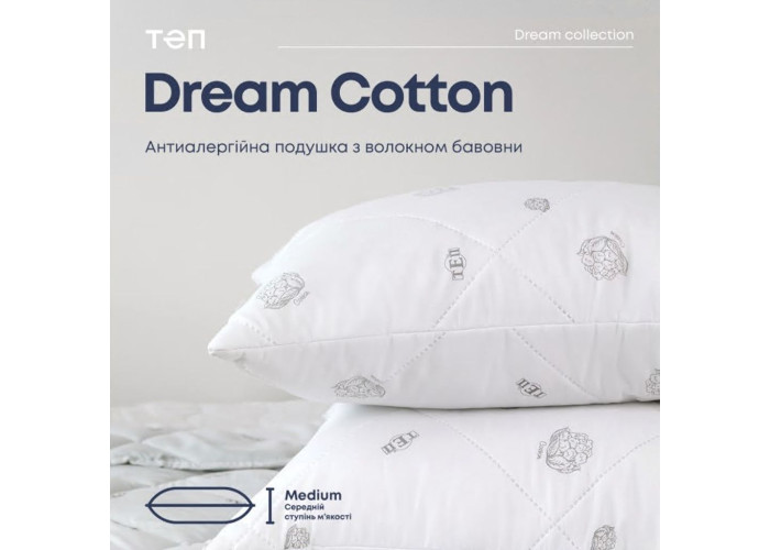 Натуральне бавовняне волокно м’яке та ніжне, це улюблений традиційний наповнювач в домашньому текстилі. Воно чудово поєднується з поліефірним силіконізованим волокном Double Air -антиалергенним, пружним, що відмінно відновлює форму. Подушки з колекції Dream від ТЕП – це солодкі сни та комфортний відпочинок за оптимальною ціною. Найкращі товари ТЕП з категорії Подушки оберіть швидко - пишіть на вайбер +380661920048 З повагою та любов'ю Грін Фарм - постільна білизна та домашній текстиль.