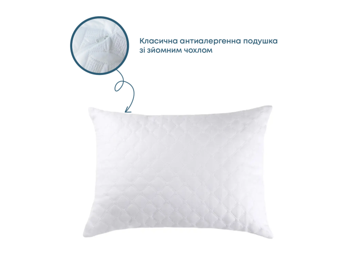 6 причин полюбити цю подушку: 1. Не викликає алергії - тому користуватися можуть усі;2. “Дихаюча” тканина забезпечує відчуття свіжості вночі;3. Наповнювач не збивається - достатньо легко потрусити подушку для відновлення об'єму;4. Подушка підлаштовується під висоту плеча та форму тіла для зручного положення голови під час сну;5. Простота у догляді: зйомний чохол можна прати в пральній машині та сушити в сушильній машині;6. Виготовляється в Україні з турботою про здоровий сон і дотриманням європейських стандартів якості.