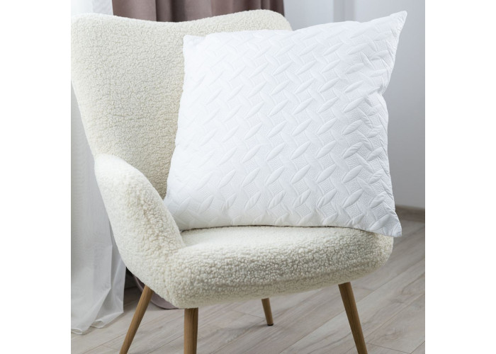 Зовнішній чохол з тканини мікрофібра вистебаний із застосуванням технології ультразвукової пайки, завдяки якій у подушки немає швів. Це забезпечує тривалу та просту експлуатацію виробу. Зйомний чохол подушки на блискавці дозволяє прати його окремо від внутрішнього наповнювача, що значно полегшує догляд.