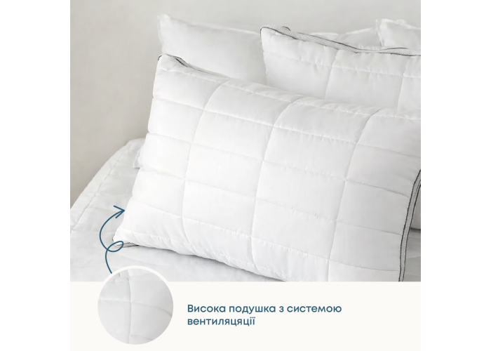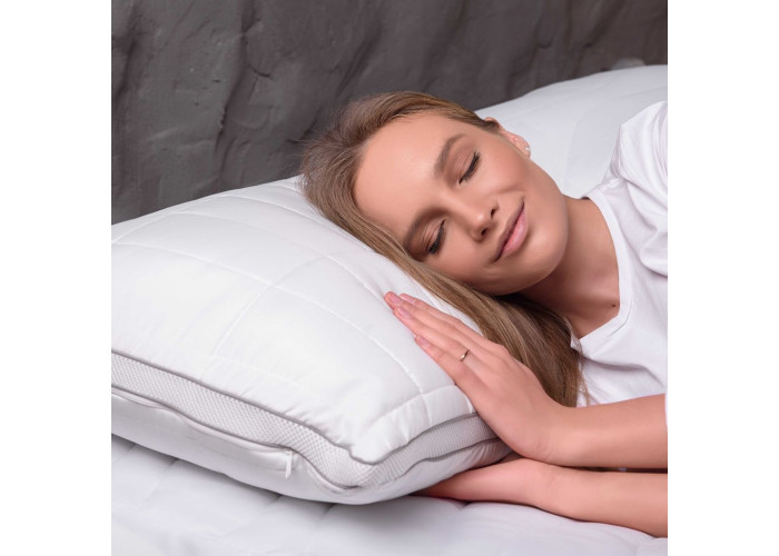 6 причин полюбити цю подушку:1. Не викликає алергії - тому користуватися можуть усі;2. Сприяє розслабленню м'язів шиї;3. "Дихаюча" тканина та додаткова вентиляційна сітка забезпечують відчуття свіжості вночі;4. Подушка підлаштовується під висоту плеча та форму тіла для зручного положення голови під час сну;5. Простота у догляді: можна прати в пральній машині та сушити в сушильній машині;6. Виготовляється в Україні з турботою про здоровий сон і дотриманням європейських стандартів якості.