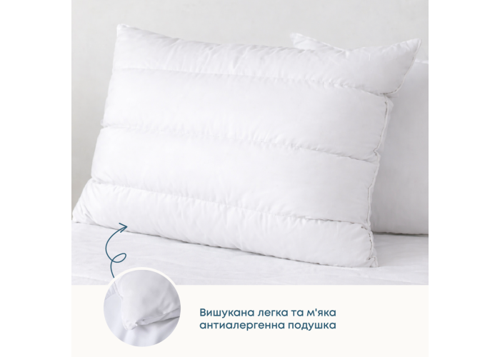 Дуже м'яка, легка подушка з натуральним пухо-пір'яним наповнювачем дарує відчуття комфорту, допомагає розслабитися, адже легко підлаштовується під форму тіла людини.