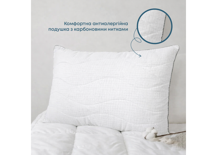 Комфортна антиалергійна подушка з карбоновими нитками.