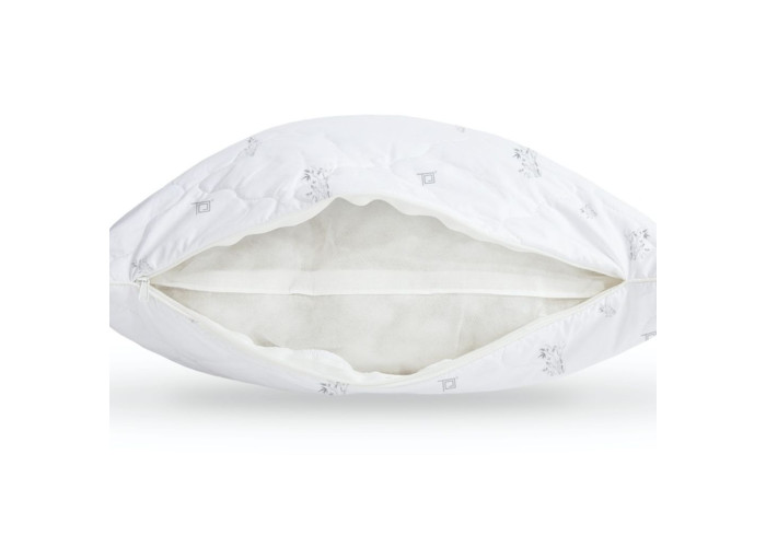 Бамбукове волокно пристебане до зйомного чохла, а всередині подушки – поліефірне силіконізоване волокно Double Air, антиалергійне, пружне, відмінно відновлює форму.