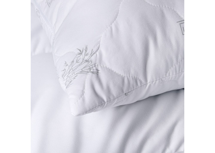 Тканина зовнішнього стебнованого чохла – мікрофібра Membrana, високотехнологічна сучасна тканина. З внутрішнього боку ця тканина оброблена ультразвуковим коландером, що створює ефект мембрани. Особливість мембрани – пропускати всередину виробу трохи більше повітря, ніж випускати назовні. Так виникає повітряний ефект, який робить ковдри та подушки більш об'ємними, легкими, ніжними. Membrana – це тканина нового покоління, оксамитова, еластична, ніжна і дуже міцна. Бамбукове волокно пристебане до зйомного чохла, а всередині подушки – поліефірне силіконізоване волокно Double Air, антиалергійне, пружне, відмінно відновлює форму. Бамбукове волокно має ефект свіжості та легкої прохолоди влітку. Подушки з колекції Nature від ТЕП – це сила природного відновлення для здорового комфортного сну.