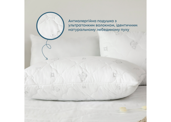 Вишукана антиалергенна стебнована подушка з волокном, ідентичним натуральному лебединому пуху.