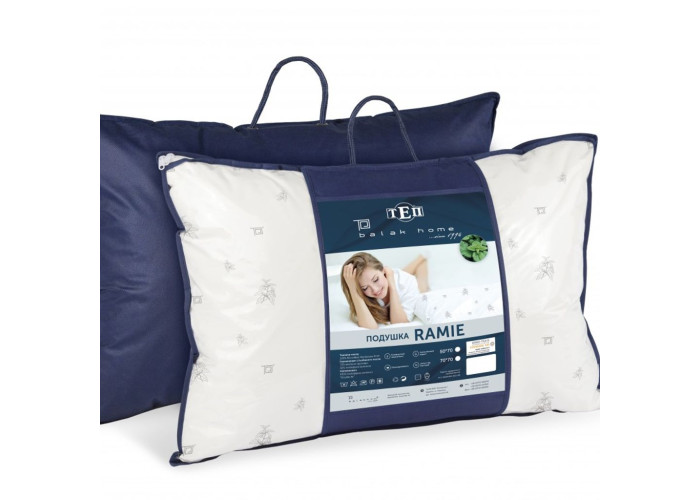Натуральне волокно рамі пристебане до зйомного чохла, а всередині подушки – поліефірне силіконізоване волокно Double Air, антиалергійне, пружне, відмінно відновлює форму.