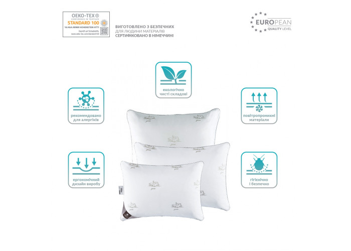 Безпека. Безпека матеріалів, використовуваних при виробництві колекції, підтверджена сертифікатом OEKO-TEX® STANDARD 100. Подушки SUPER SOFT CLASSIC антиалергенні та антибактеріальні. Вони дихають, тому комфортні в різні пори року.