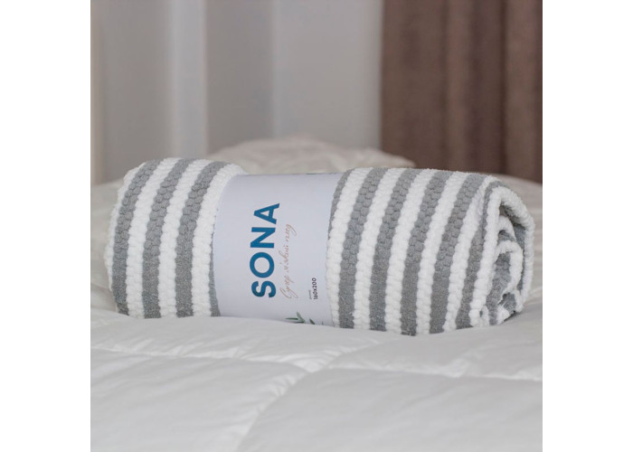 Плед SONA створений для особливих моментів щодня . Він має м’яку приємну до тіла текстуру, його тканина добре вбирає вологу, його спокійні кольори в природній гамі гармонійно впишуться в будь-який інтер’єр та ситуацію.