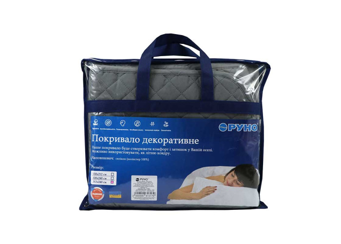 Шви виходять дуже міцними, а візерунок більш виражений. При такому способі нанесення візерунка не використовуються нитки. Покривало 150х212 "Grey" темно сірий + світло сірий — це якісний текстиль для комфортного та здорового сну. Виріб виготовлений з , що забезпечує м’якість, зносостійкість та довгий термін служби. Наповнювач добре утримує тепло, пропускає повітря та підходить для щоденного використання. Розмір ідеально підходить для Покривала. Продукція бренду Руно відповідає сучасним стандартам якості та безпеки. Покривало 150х212 "Grey" темно сірий + світло сірий легко доглядати, підходить для дому, квартири або подарунка. Замовляйте Покривало 150х212 "Grey" темно сірий + світло сірий в інтернет-магазині Green-Farm з доставкою по всій Україні, швидкий зв'язок у Вайбер +380661920048