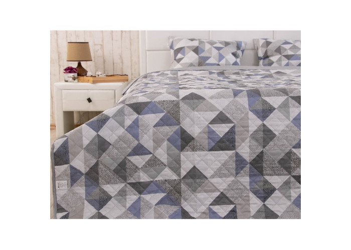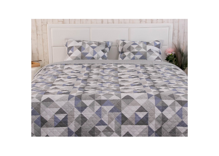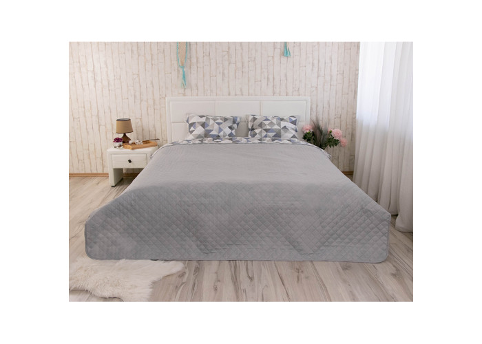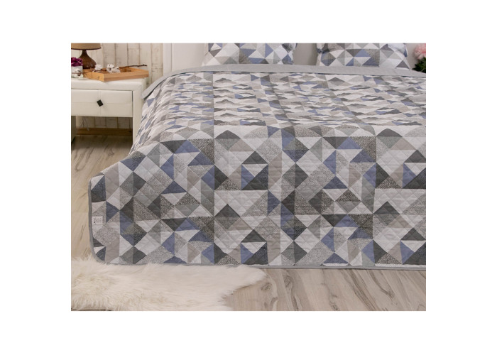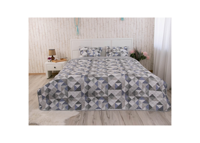 Декоративне покривало виконано в дизайнерському колірному рішенні. З одного боку геометричний малюнок з іншого - однотонна тканина.