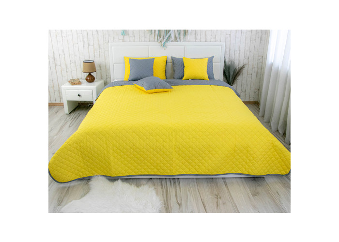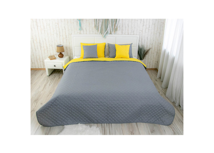 Покривало 220х240 з ультрозвуковою стібкою Yellow Grey