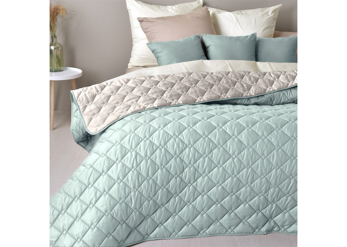 Двобічна конструкція покривала дозволяє урізноманітнити інтер`єр. Обидві сторони абсолютно рівноцінні. Якою з них застелити ліжко - залежить лише від вас. Настрій, бажання зробити особливий акцент - без обмежень. Велика розмірна сітка дозволяє підібрати варіант покривала на будь-яке ліжко. Ви можете вибрати варіант, при якому покривало буде звисати. Є можливість загнути частину, демонструючи контрастний колір.
