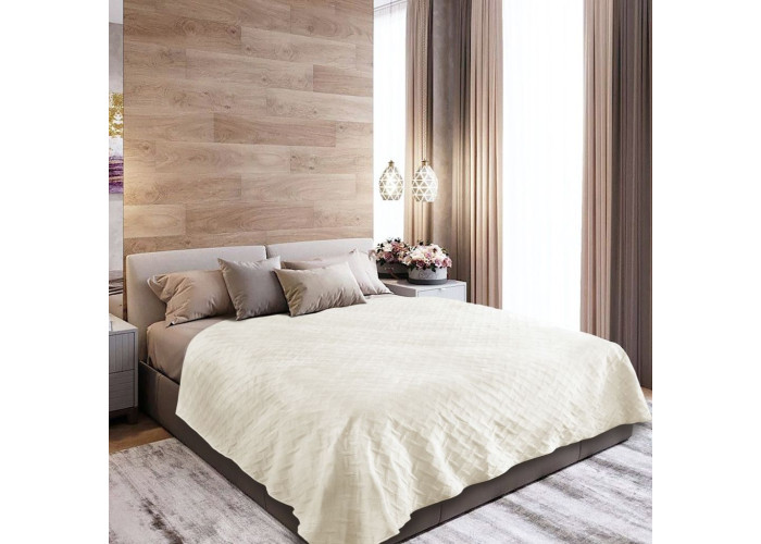 Наповнювач в покривалах VELURE – силіконізоване поліефірне полотно. Воно не вбирає пил і бруд, не викликає алергічних реакцій, швидко сохне після прання. Тонкий шар наповнювача всередині покривала дає можливість використовувати його влітку як тонку ковдру. Покривало VELURE - дбайливо розроблений дизайн, який доповнить затишну атмосферу спальні.