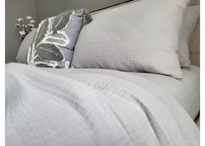 - Високу повітропроникність та гігроскопічність тканини. Муслін чудово вбирає та відводить вологу. Тканина "дихає" практично як живий організм, даруючи власнику комфорт під час сну.