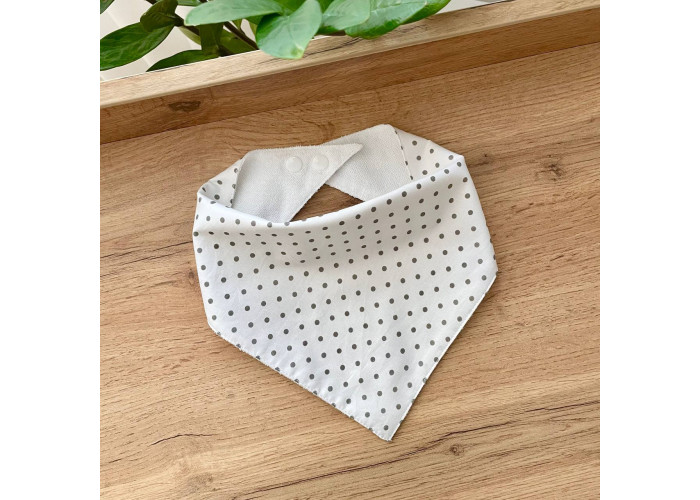 Слинявчик-куточок на кнопці являє собою трикутник розміром 46х23х23, двошаровий склад, 100% бавовна. Одна сторона виконана з попліну, а інша з м'якої махри. Між ними знаходиться спеціальний мембранний шар, який повністю водонепроникний.