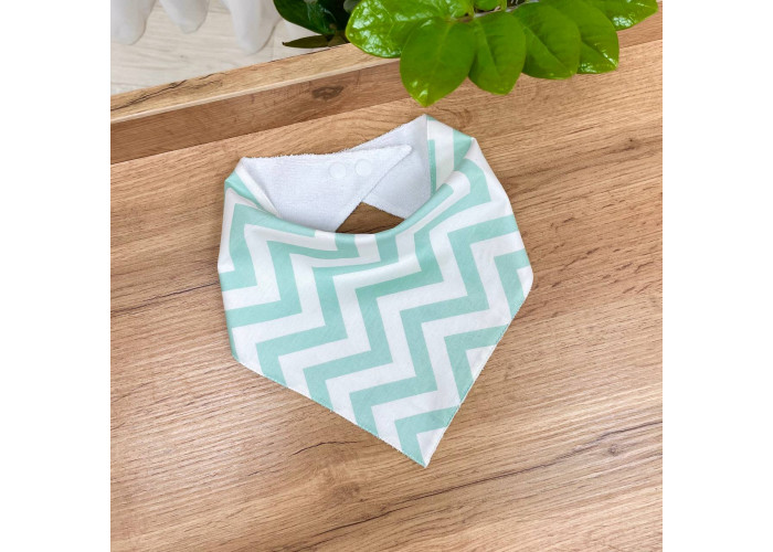 Слинявчик-куточок на кнопці являє собою трикутник розміром 46х23х23, двошаровий склад, 100% бавовна. Одна сторона виконана з попліну, а інша з м'якої махри. Між ними знаходиться спеціальний мембранний шар, який повністю водонепроникний.