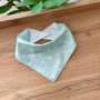 Слинявчик-куточок на кнопці являє собою трикутник розміром 46х23х23, двошаровий склад, 100% бавовна. Одна сторона виконана з попліну, а інша з м'якої махри. Між ними знаходиться спеціальний мембранний шар, який повністю водонепроникний.