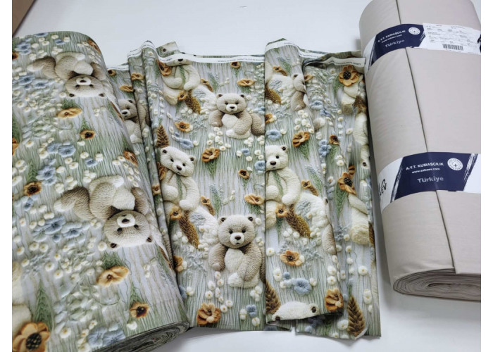 Комплект постільної білизни Ведмедики плюшеві беж, cotton 5D